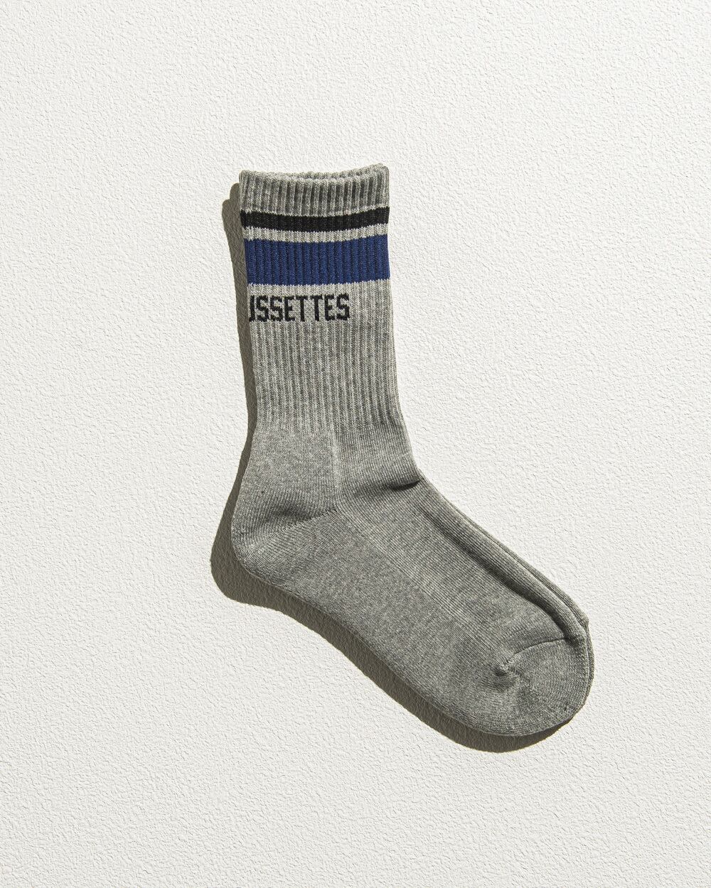 筒部分はゴム畦編み、底部分はパイル編みにし、本格的なスポーツソックス仕様にしています。