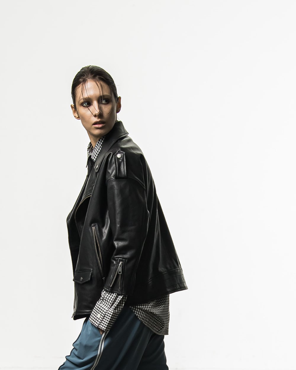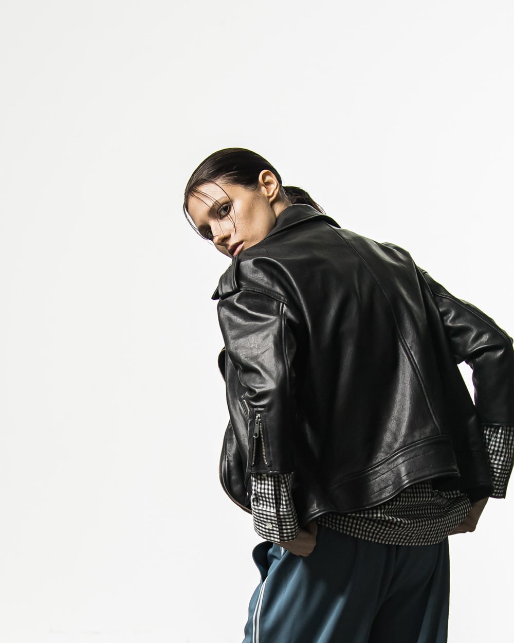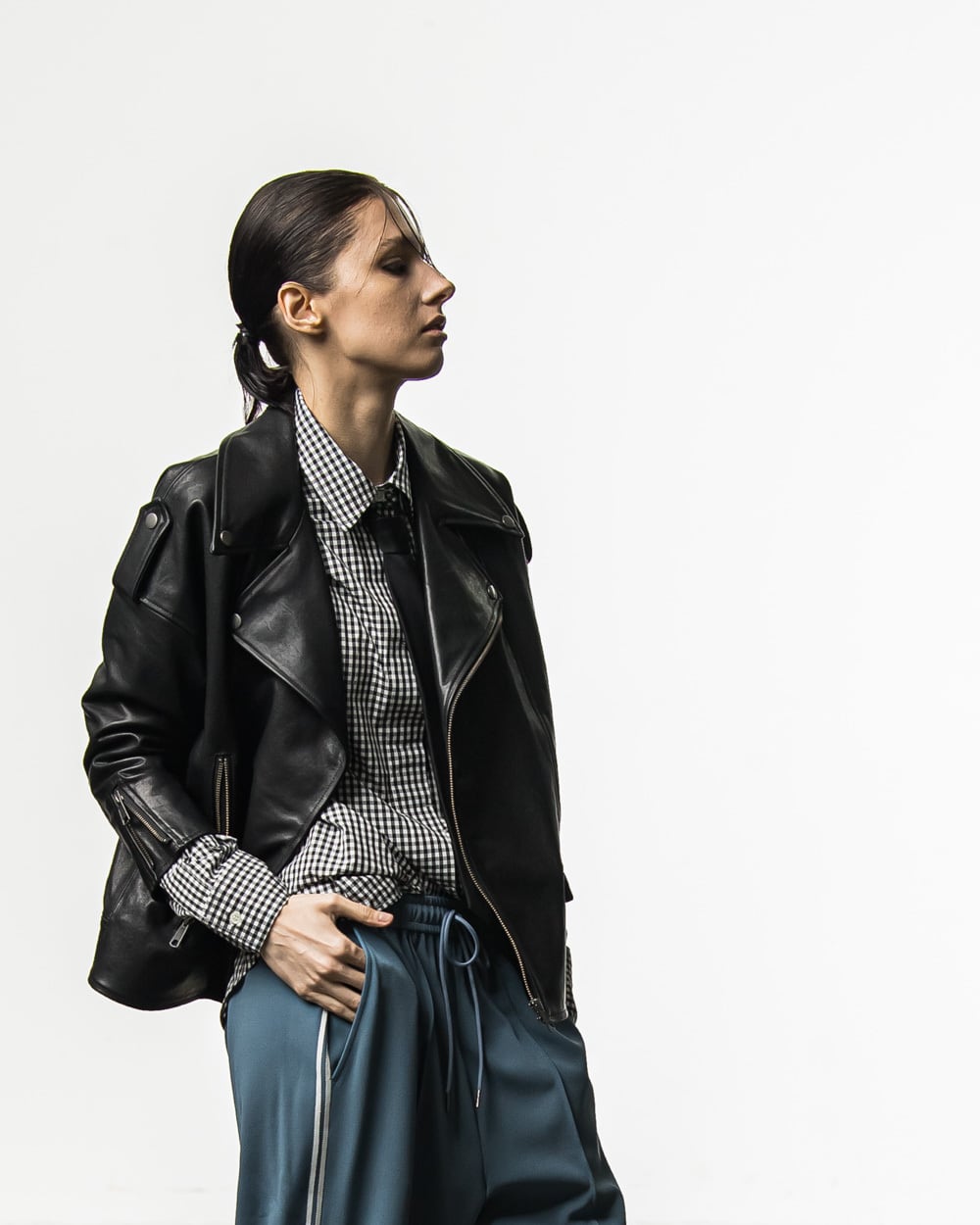 しっかりとした肉感のラムレザーを使用し、ゆるいサイズ感でリラックスしたライダースブルゾンに。レングス、袖丈は短めでバランス良く仕上げています。